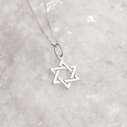 Colar pingente estrela de Davi 14mm 45cm | Mya Prata
