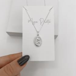 Colar pingente medalha dupla face São Francisco de Assis e cruz 16mm corrente cadeadinho 45cm | Mya Prata