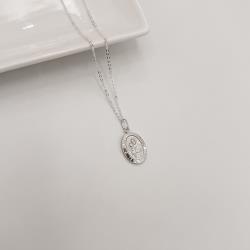 Colar pingente medalha dupla face Santo Antônio e cruz 16mm corrente cadeadinho 45cm | Mya Prata
