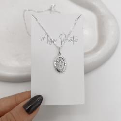 Colar pingente medalha dupla face São Sebastião e cruz 16mm corrente cadeadinho 45cm | Mya Prata
