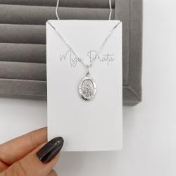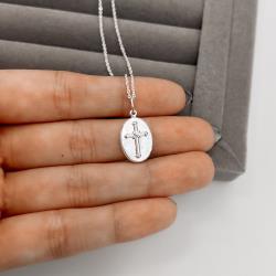 Colar pingente medalha dupla face São Pedro e cruz 16mm corrente cadeadinho 45cm | Mya Prata