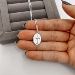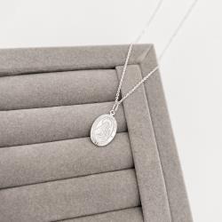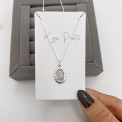 Colar pingente medalha dupla face Santa Terezinha e cruz 16mm corrente cadeadinho 45cm | Mya Prata