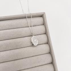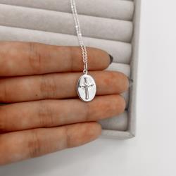 Colar pingente medalha dupla face Santa Rita de Cássia e cruz 16mm corrente cadeadinho 45cm | Mya Prata
