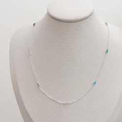Colar entremeios zircônias navetes coloridas 6mm corrente cartier 45cm | Mya Prata