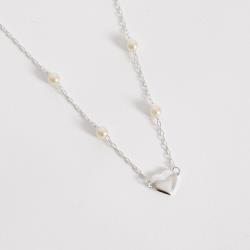 Colar entremeios pérolas 5mm e coração 10mm corrente cadeado 40+5cm | Mya Prata