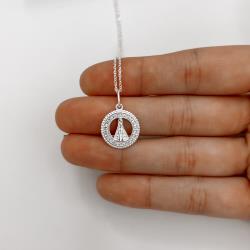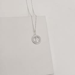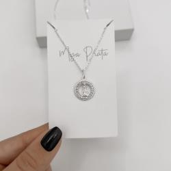 Colar pingente medalha vazada Nsa. Sra. Aparecida cravejada 15mm corrente cadeadinho 45cm | Mya Prata
