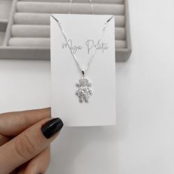 Colar pingente menina toda cravejada 19mm 45cm | Mya Prata