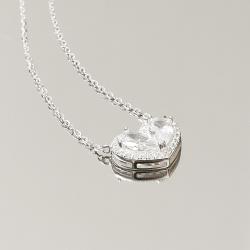 Colar coração cravejado caixa alta 15mm corrente cadeado 40+5cm | Mya Prata