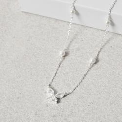 Colar entremeio borboleta cravejada 11mm e pérolas corrente cadeado 40+5cm | Mya Prata