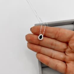 Colar zircônia gota ônix com cravejado 10mm 45cm | Mya Prata