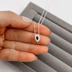 Colar zircônia navete ônix com cravejado 10mm 45cm | Mya Prata