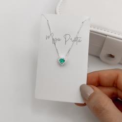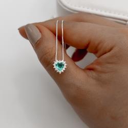 Colar zircônia coração acqua com cravejado 9mm 45cm | Mya Prata