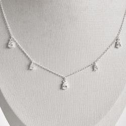 Colar pingentes zircônias gota 5 e 6mm corrente grumet 45cm | Mya Prata