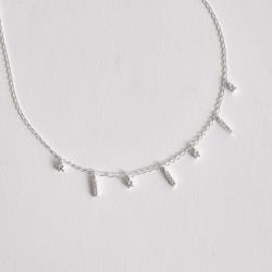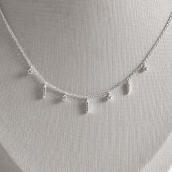 Colar pingentes zircônias e palitos cravejados 6mm corrente grumet 45cm | Mya Prata