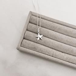 Colar pingente estrela vinco 12mm 40cm | Mya Prata