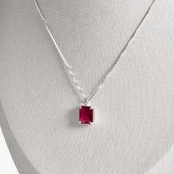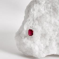 Colar pingente zircônia retangular cereja 10mm 45cm | Mya Prata