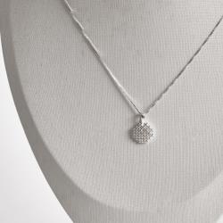 Colar pingente botão vazado cravejado 10mm 45cm | Mya Prata