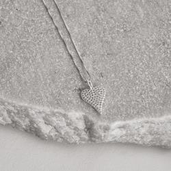 Colar pingente coração alongado cravejado 17mm 45cm | Mya Prata