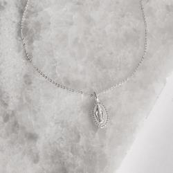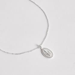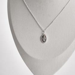 Colar pingente medalha Nsa. Sra. das Graças borda cravejada 16mm corrente cadeadinho 45cm | Mya Prata