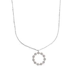 Colar pingente círculo vazado cravejado 17mm corrente cadeadinho 45cm | Mya Prata