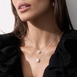 Colar pingente meia bola cravejada 11mm 45cm | Mya Prata