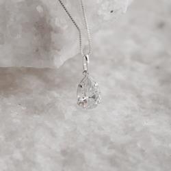 Colar pingente zircônia gota cristal 12mm 45cm | Mya Prata