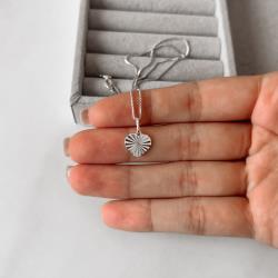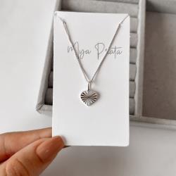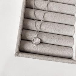 Colar pingente coração vinco 11mm 45cm | Mya Prata