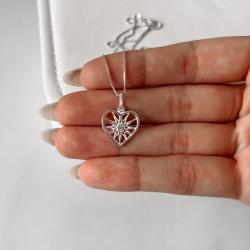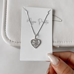 Colar pingente coração com estrela 15mm 45cm | Mya Prata