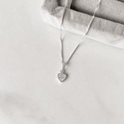 Colar pingente coração cravejado 7mm 40cm | Mya Prata