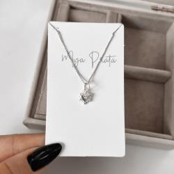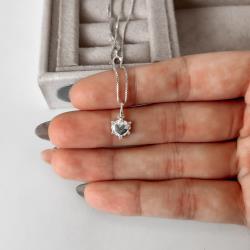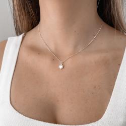 Colar pingente coração detalhe zircônias 8mm 40cm | Mya Prata