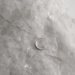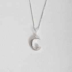 Colar pingente lua com detalhe zircônia 14mm 45cm | Mya Prata