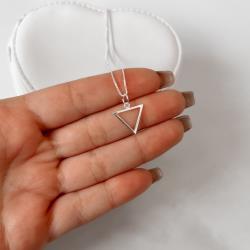 Colar pingente triângulo vazado 12mm 40cm | Mya Prata