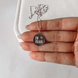 Colar pingente medalha eu amo praia 45cm | Mya Prata