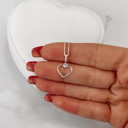 Colar pingente coração vazado 12mm 40cm | Mya Prata