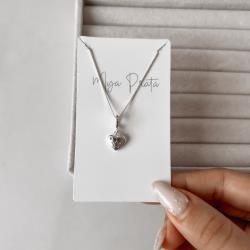 Colar pingente coração desenho estrela 9mm 45cm | Mya Prata