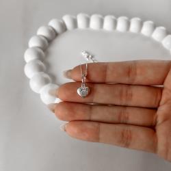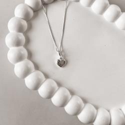 Colar pingente coração desenho trevo 9mm 45cm | Mya Prata