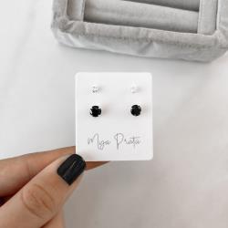 Dupla zircônias redonda cristal 3mm e ônix 6mm | Mya Prata