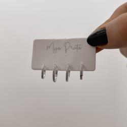 Dupla argolas click 11 e 13mm frente e verso cravejado | Mya Prata