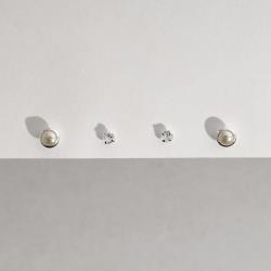 Dupla zircônia 3mm e meia pérola 4mm | Mya Prata