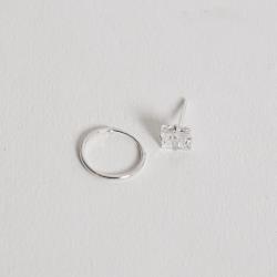 Dupla zircônia quadrada 6mm e argola 12mm | Mya Prata