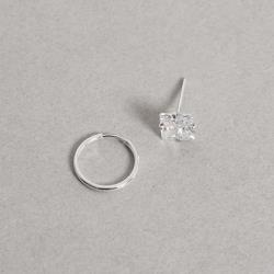 Descrição: Dupla zircônia quadrada 6mm e argola 12mm fabricado(a) em prata