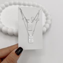 Escapulário medalhas tradicional verso Salmos v15 60cm | Mya Prata