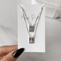 Escapulário medalhas Nsa. Sra. Aparecida e Sagrado coração verso Salmos v15 60cm | Mya Prata