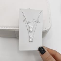 Escapulário medalhas cravejadas cruz e Jesus salva v12 60cm | Mya Prata