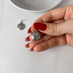 Pingente medalha mundo envelhecida 15mm | Mya Prata