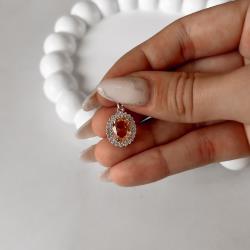 OUTLET Pingente zircônia oval rose com cravejado 15mm