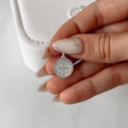 Pingente medalha São Bento cravejada 14mm | Mya Prata