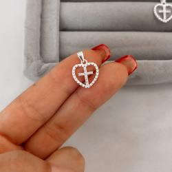Pingente coração fio bolinhas com cruz cravejada 12mm | Mya Prata