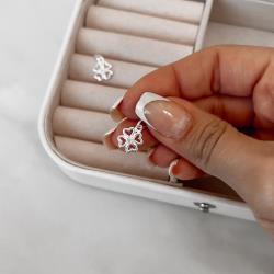 Pingente trevo vazado com zircônia 9mm | Mya Prata