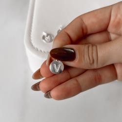 Pingente medalha letra V cravejada 15mm | Mya Prata
